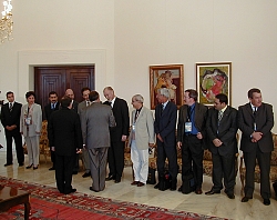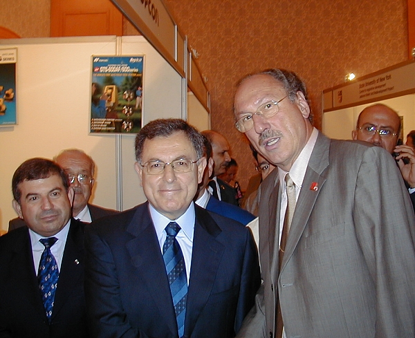 H. E. President Gen. Lahoud greeting presidents of FIG and AUS. |