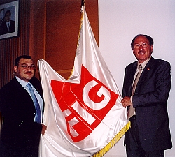President Magel and Yaacoub Saade and the new FIG flag produced