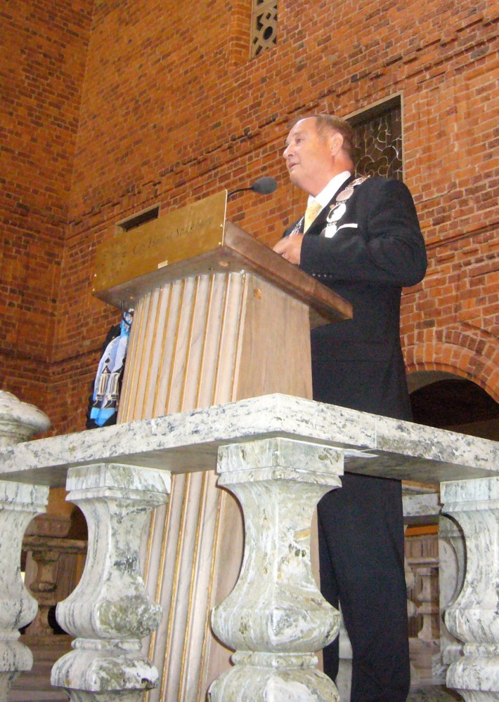 Stig Enemark and Svante Astermo listening to the speech of the Lord Mayor.