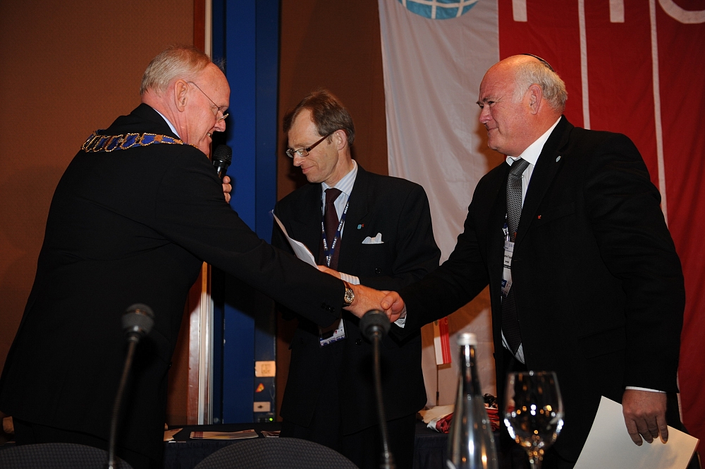 Flag ceremony where the FIG flag was handed over from ALSI to ISA, Australia for the FIG Congress 2010.