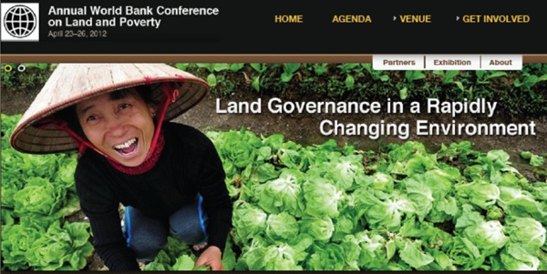 The 2012 Annual World Bank Conference on Land and Poverty had record attendance, over 550 participants from over 85 countries with approximately 350 presentations. This year, the conference proper covered three full days and including side events and meetings, took up the entire week between 23rd and 27th April 2012. The venue of the Conference was, once again, the World Bank Headquarters.