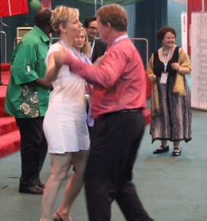 Vice President Rudolfs Staiger showing his African dance talent together with NIS president Bode Adeaga and the Nigerian dancers.
