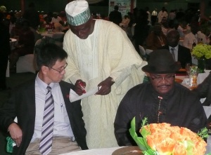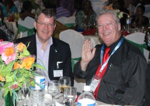 FIG President CheeHai Teo and Minister of Works, Arc. Mike Onolememen enjoy the gala dinner.