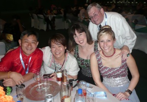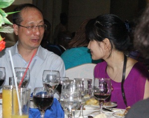 Julie Hyun Sook Lee, Korea ,who is working in the FIG Office for one year enjoys the dinner with John Hannah, and Danilo Antonio.