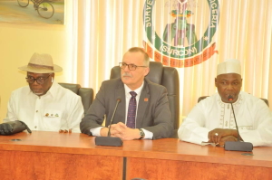 During the stay it was made possible to pay a visit to the French Embassy. The French Embassy together with the Belgium embassy handle visa issues for the Dutch embassy, and therefore FIG President Staiger with Kabir Mansur Mohammad and Acabo C. D. Charles had a meeting with Mr. Sylvain Naulin political officer at the French Embassy in Abuja to discuss the handling of Nigerian visa applications for the FIG Working Week 2020.