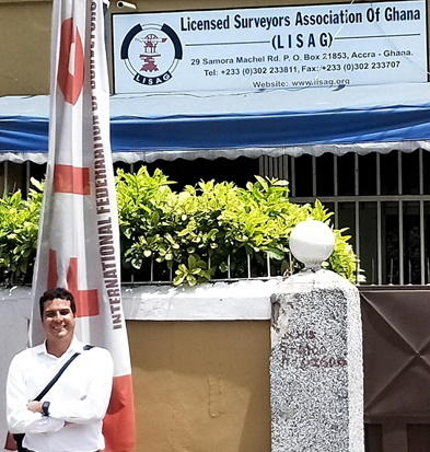 Figure  4: Daniel Paez, Chair of Commission 7, visiting the Licensed Surveyors Association of Ghana offices in Accra. Very generously, the local organisers for the Working Week 2021 from Ghana have offered that the FIG Working Week that should have taken place in the Netherlands in 2020, can be held in the Netherlands in 2021 (instead of Ghana). It is a very special and generous offer from the Ghanaian Local Organising Committee for which both FIG Council and the Dutch Local Organisers are very grateful. This is showing real FIG spirit to come up with such an offer!  (source: Daniel Paez)