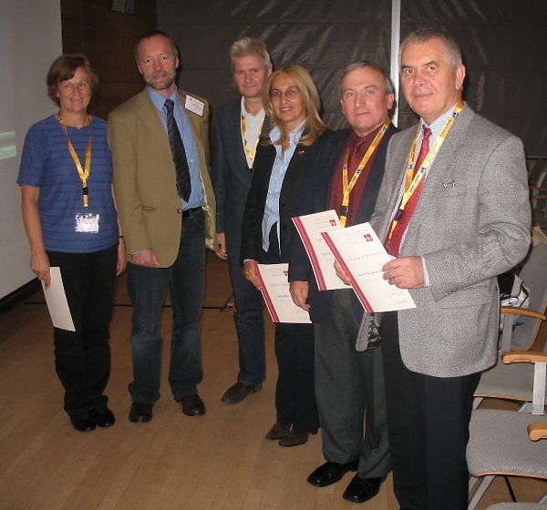 (from the left: Kari STRANDE / WG3.1, Gerhard MUGGENHUBER / Chair of Commission 3, Reinfried MANSBERGER / Secretary, Chryssy POTSIOU / WG3.3, Yerach DOYTSHER / 3D-Cadastre, Bela MARKUS / WG2.4; missing: Keith MURRAY / WG3.2)