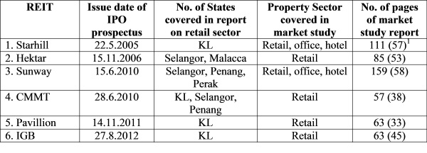 retail market study reports found in the REIT IPO prospectuses of Bursa
